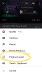 When trying to learn a solo, or to transcribe a phrase that flies by too fast for your brain to register, make use of the “Playback speed” function that is accessed by clicking on the 3 vertical dots in the upper right corner of the video window.