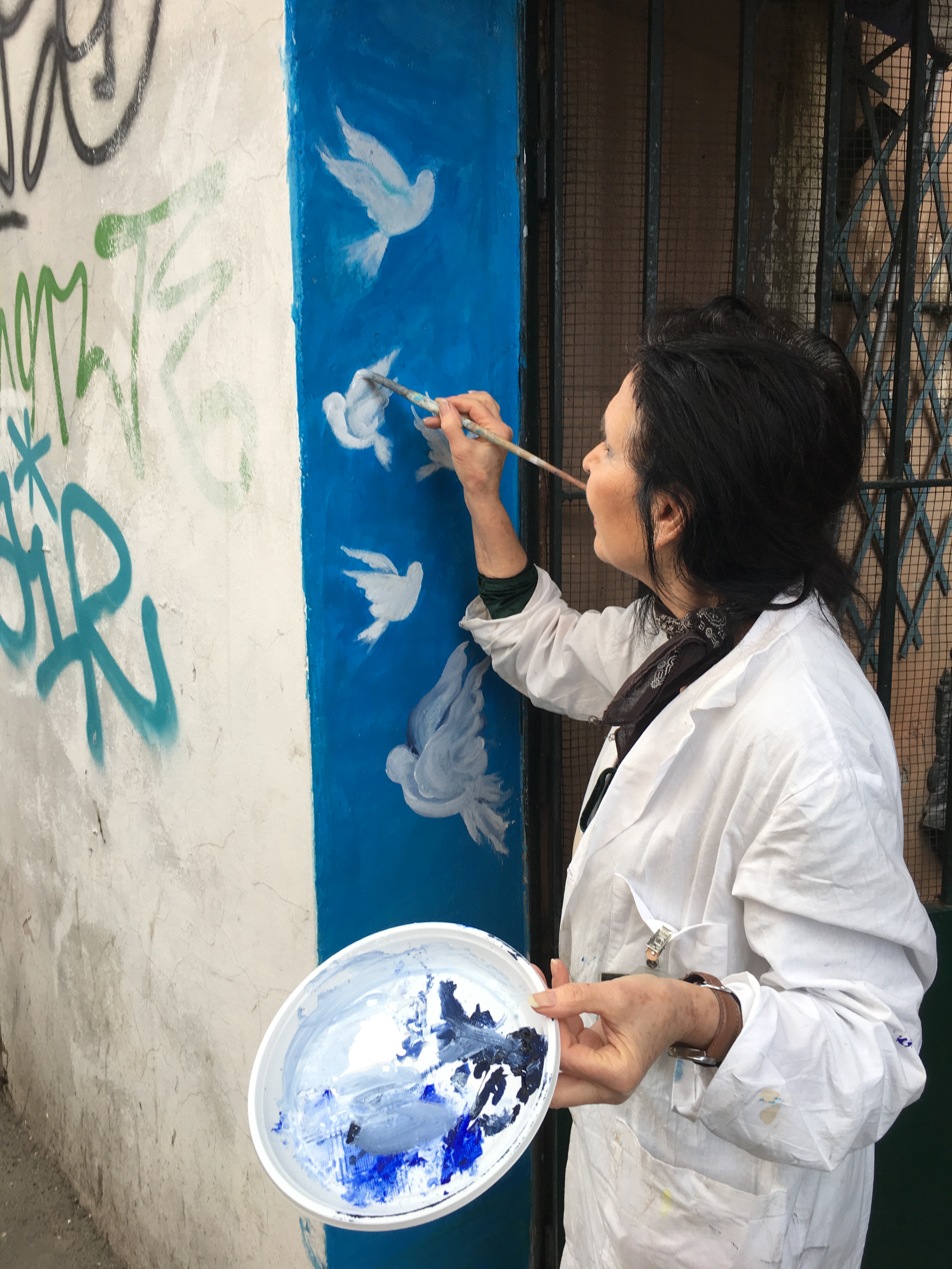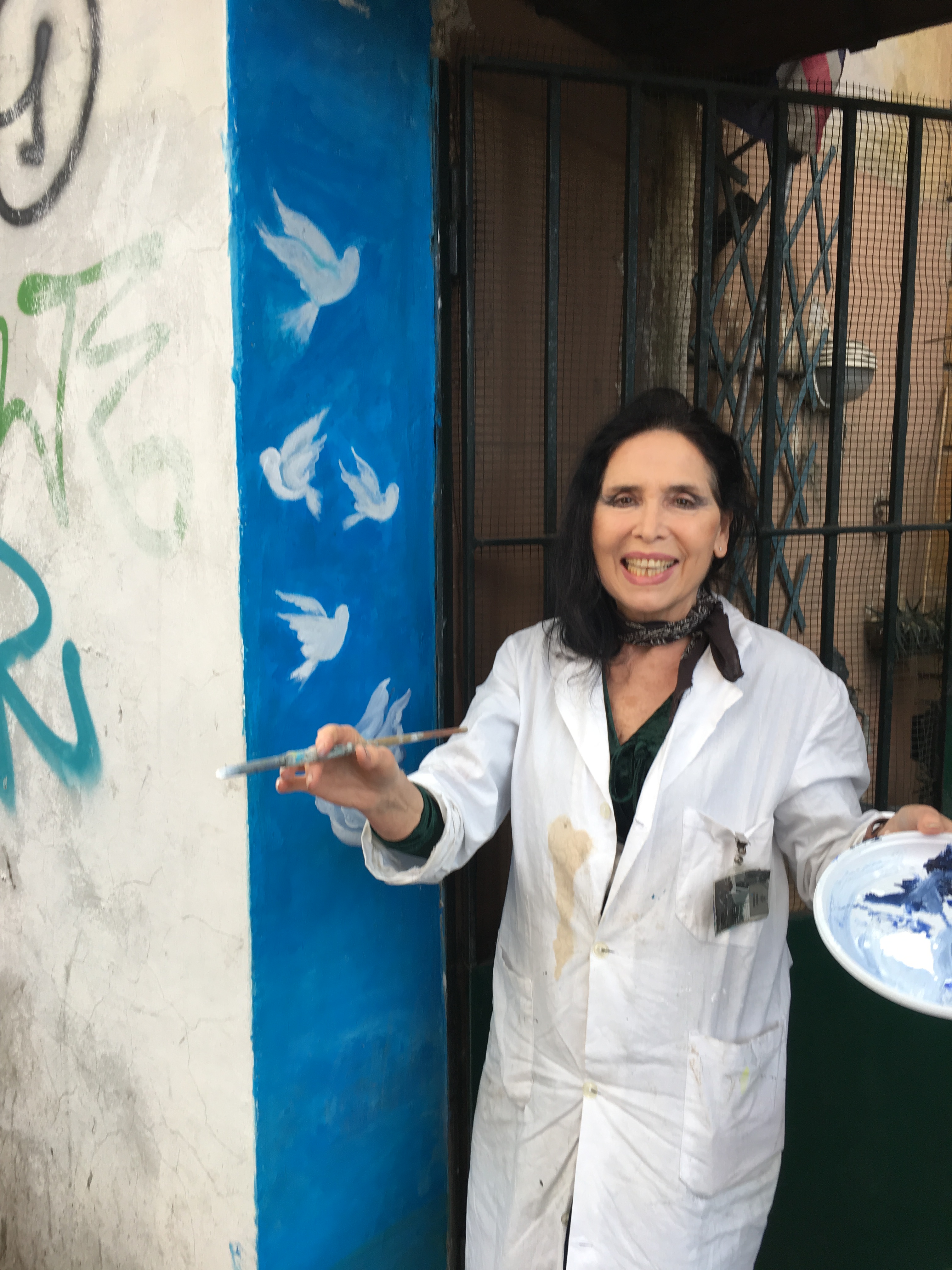 One of the cool things that happened in San Lorenzo was meeting the artist/sculptor, Franchina Casella, as she was decorating the outside of her studio on Via dei Reti.