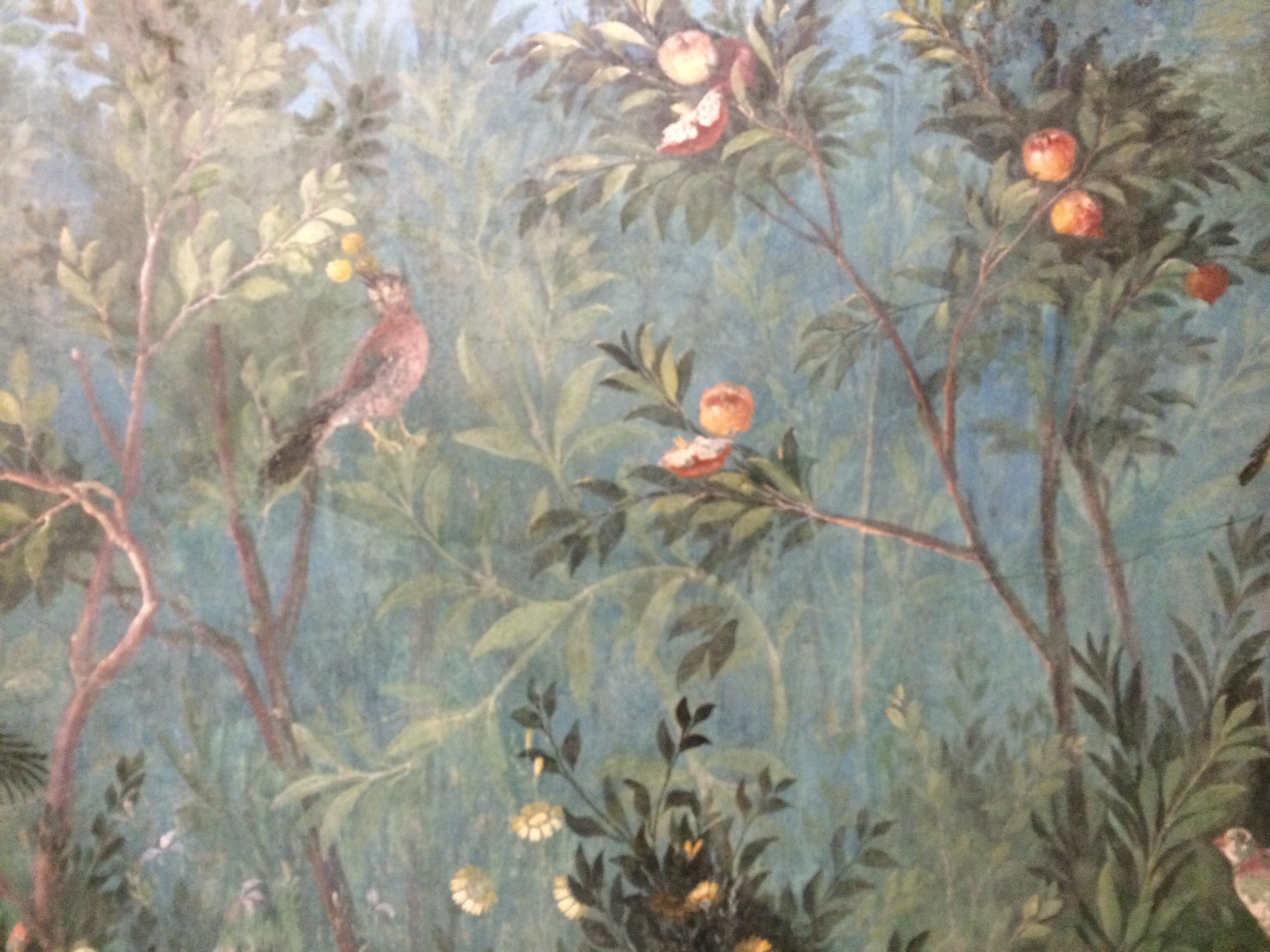 P.S. Photos on this page were taken by me a couple of years ago at the Palazzo Massimo in Rome, part of the National Museum of Rome. It was an incredibly hot day in September and I sat in this lovely cool (air conditioned) room for hours writing in my journal. The lighting in the room was configured to reflect a 24-hour cycle over 24-minutes, so the walls looked slightly different from minute-to-minute. I often think back on my time in this reconstructed room. It was one of the most tranquil spots I have ever encountered. There is an interesting video about these “painted gardens” linked here.