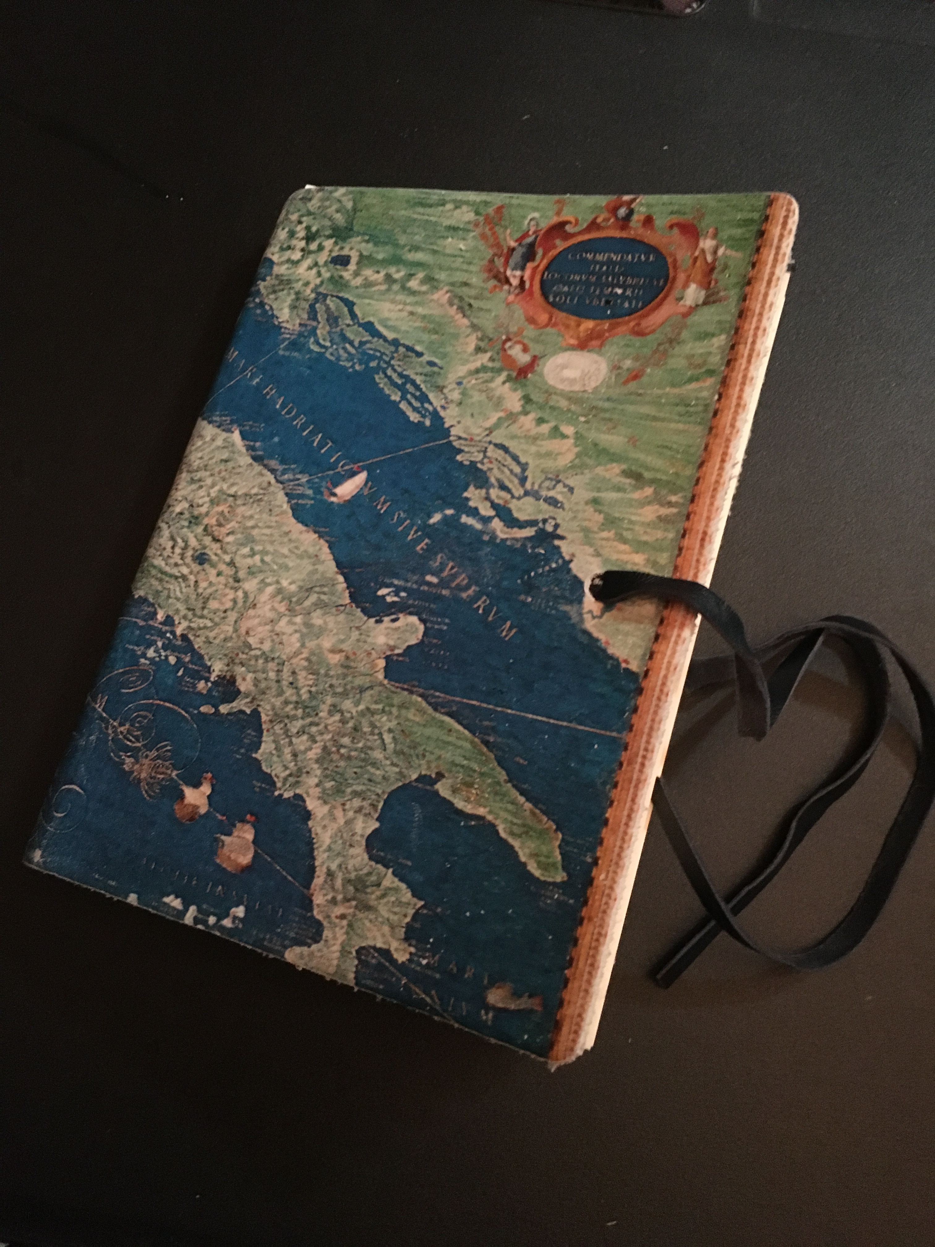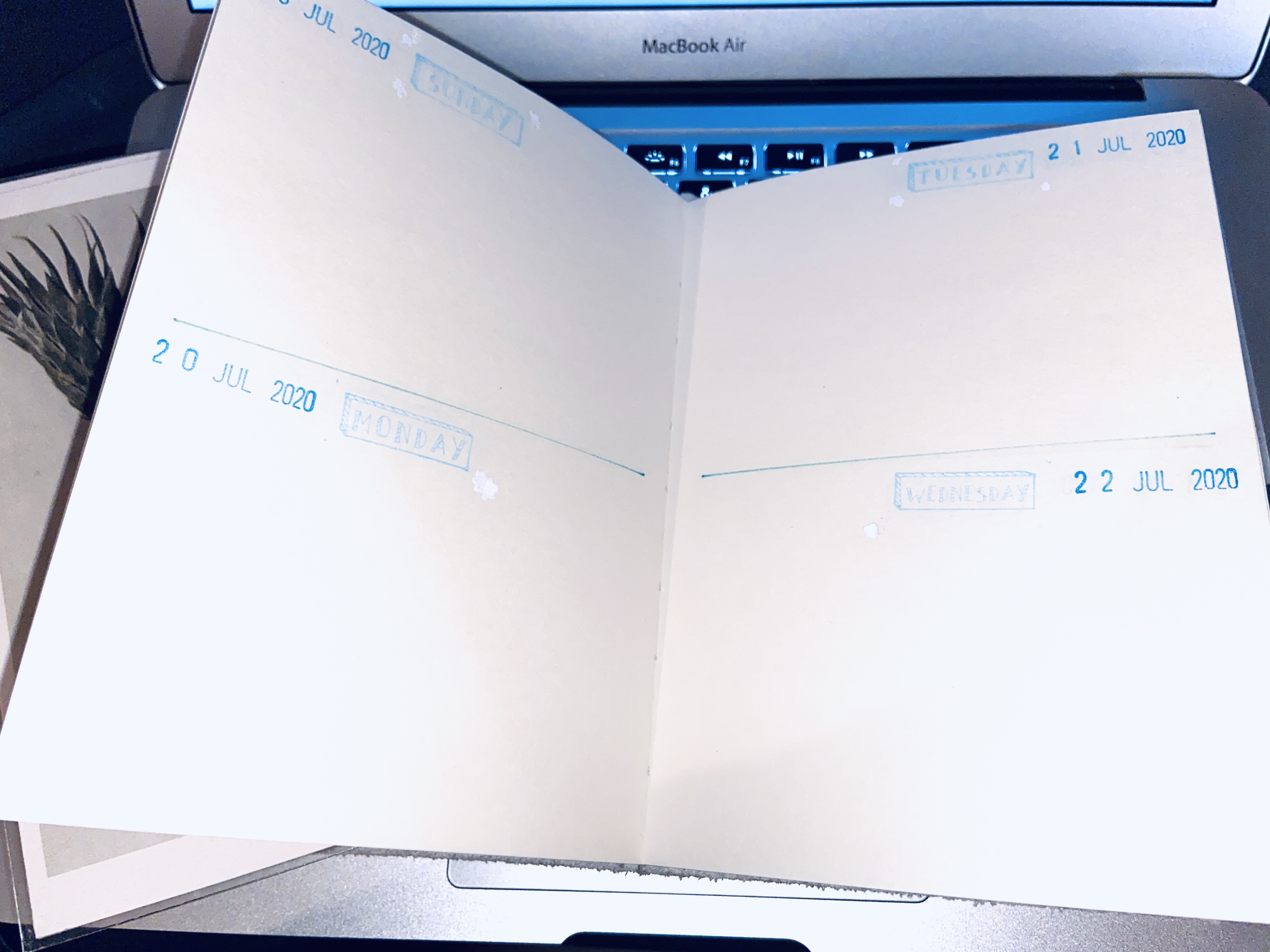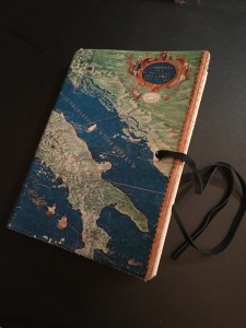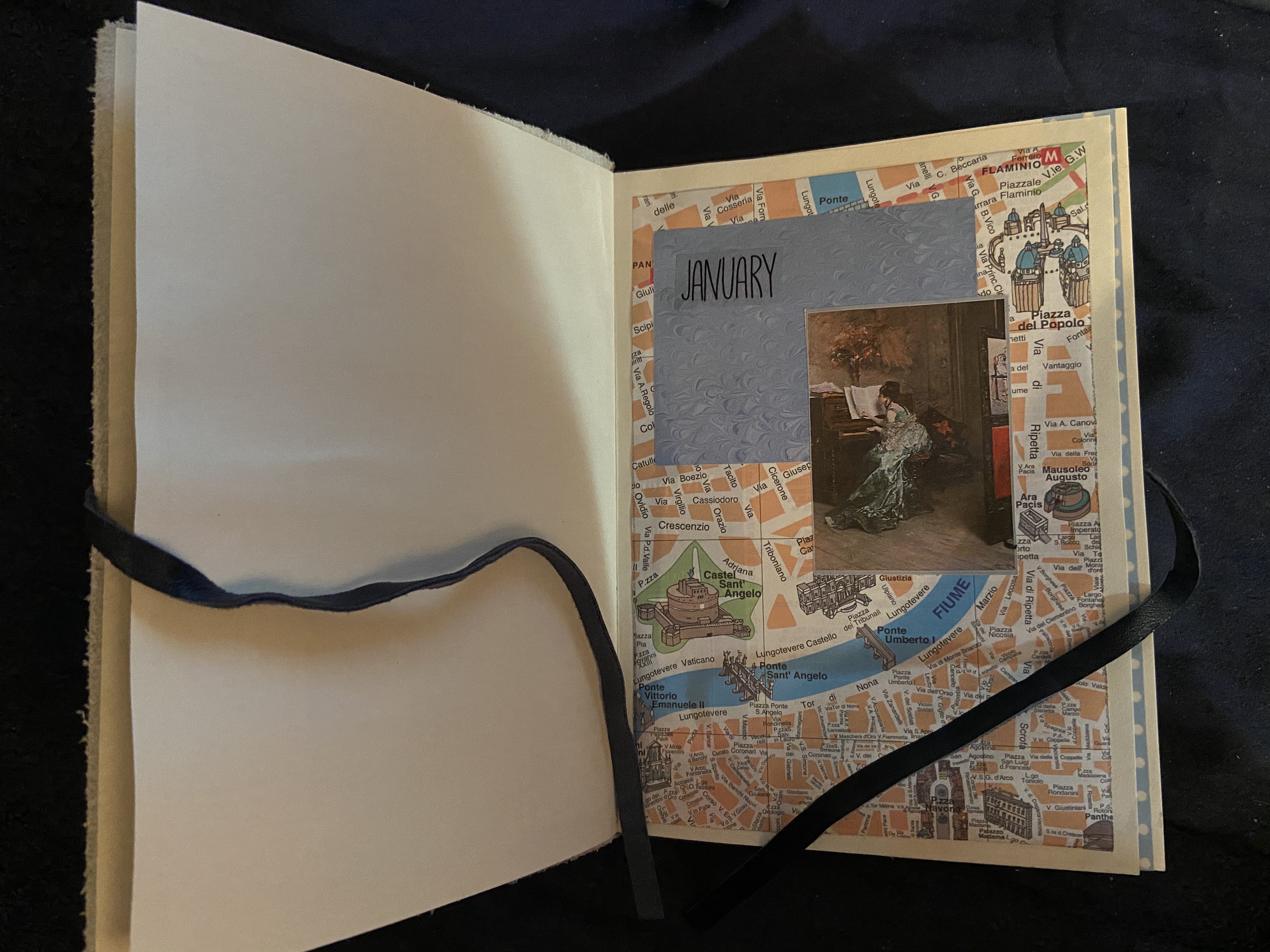 I bought this year’s blank journal at Fiumicino Airport in Rome. I saw it at the Vatican Gift Shop there and I liked the weight of the paper and the protective cover. It is a little smaller than the journals I have created before, but I figured out a way to divide each page to allow for two days worth of bulleted entries.