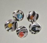 Place the paper circle on your gem (front-side down just like everything else) and rub it gently with your finger, you can add a small amount of medium to the back of the paper now if it makes it easier for you to rub. Turn the gem over and look for any bubbles of air that may be trapped between the glass and the paper and rub them out towards the edges. Do not be concerned if medium oozes out too, you can wipe it away with a slightly damp cloth, or wait until it is dry and scrape it off the glass with your fingernail. After you have rubbed out all the bubbles, apply a full coat of medium to the back of the paper to seal it.