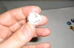 After they are dry, add a small dab of CLEAR silicone adhesive (caulk) to the back of each gem. It will look white at first but I know you made sure to read the label before your purchase and you bought the kind that dries clear or “translucent”. In this photo you can see my other very expensive “set separating device” a folded piece of torn junk mail.