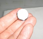 Into each dab of caulk place a magnet. I know it looks a little messy at this point, but trust me, push it down and wiggle it a bit so that the caulk comes up over the top of the sides a little – this will hold it really when when fully dried (or “cured” in caulking language.)