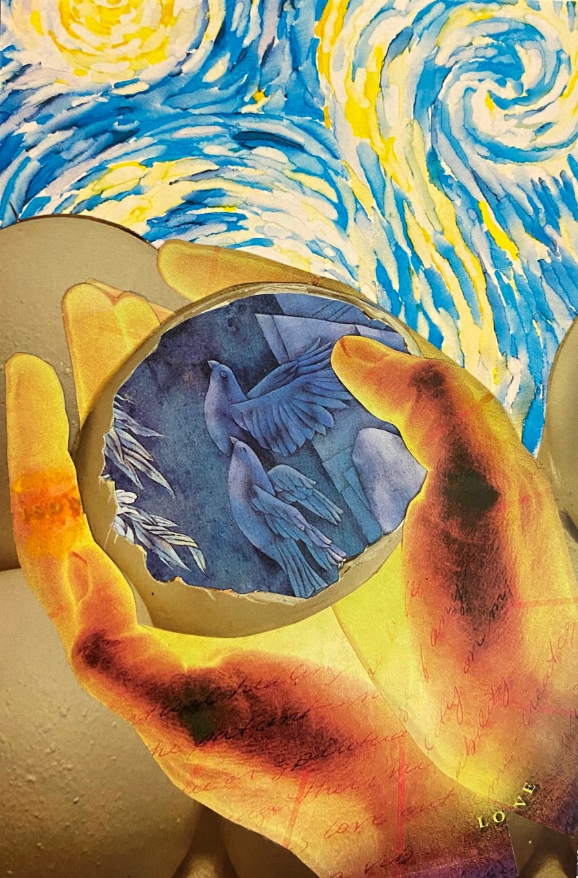 It may seem strange to post about collages when so many horrible things are going on in Ukraine. Besides making a small donation to an organization assisting there*, and offering up thoughts and prayers for peace, I have not really felt empowered to make any real difference in the resolution of the conflict. So, in order to keep my focus on the idea of “creation”, I committed my time and energy to a group art project entitled “Februllage”. In my free-time I worked continuously through the month of February to fulfill a promise (to myself) to create 28 collages based on daily prompts. This creative distraction reminded of other times in my life when outside forces were out of my control and I would sit and meditatively do needlework or other crafts in order to push through it all, to keep my spirit up, to emotionally survive. I don’t remember if I have posted this here before but I like to say: “I’m lucky that many of my defense mechanisms are considered talents.” FEBRULLAGE 2022 …